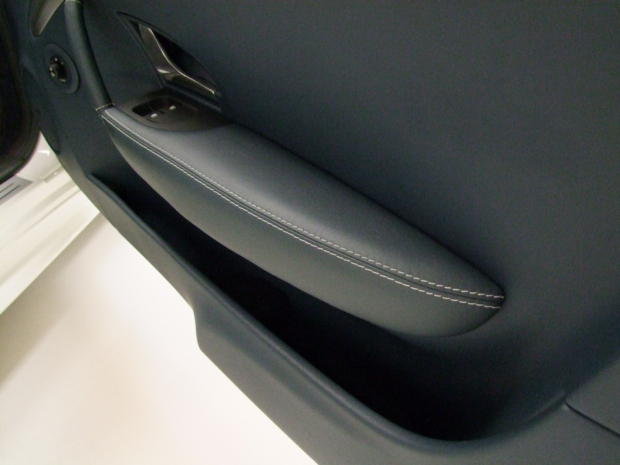 Blu Profondita Leather with Bianco Stitching